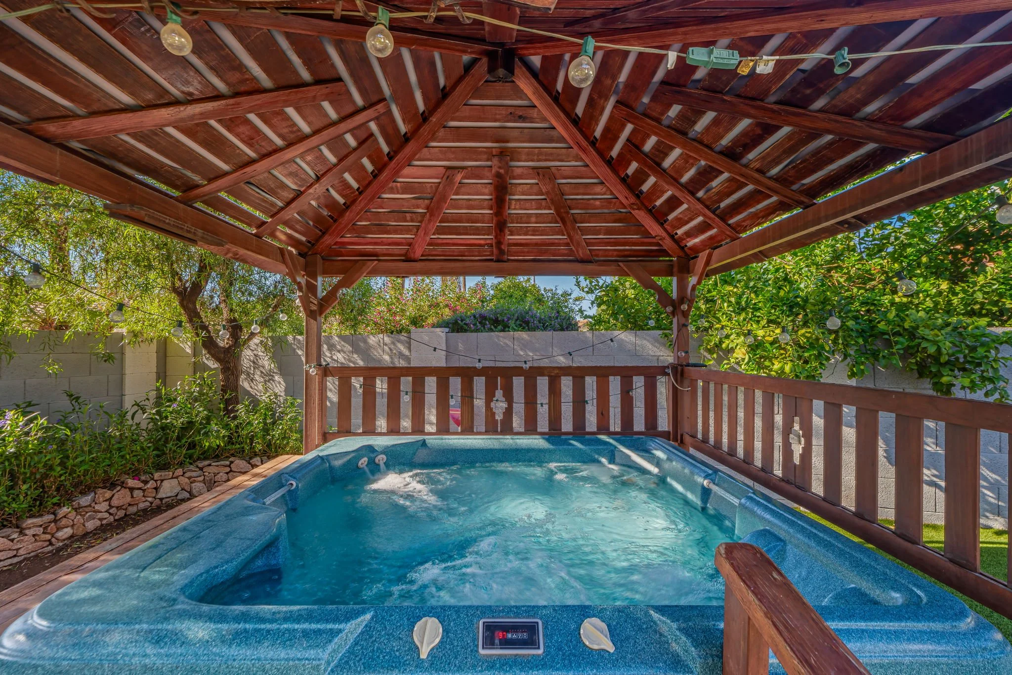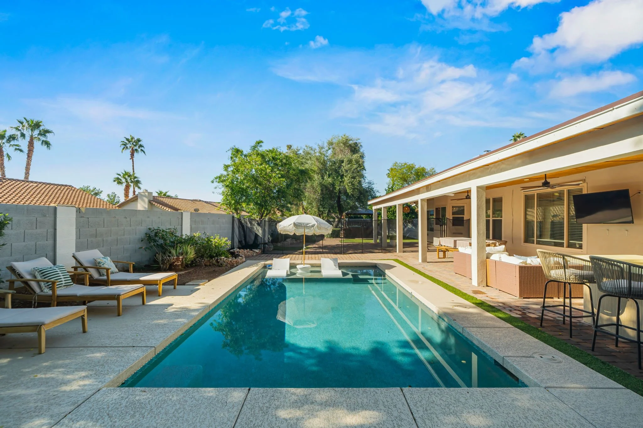Enjoy your own private backyard oasis, perfect for enjoying your morning coffee and relaxing with friends and family during the evening. Take a dip in the pool or a soak in the hot tub. Outdoor grilling and dining and a lounge with TV to enjoy the Scottsdale nights.