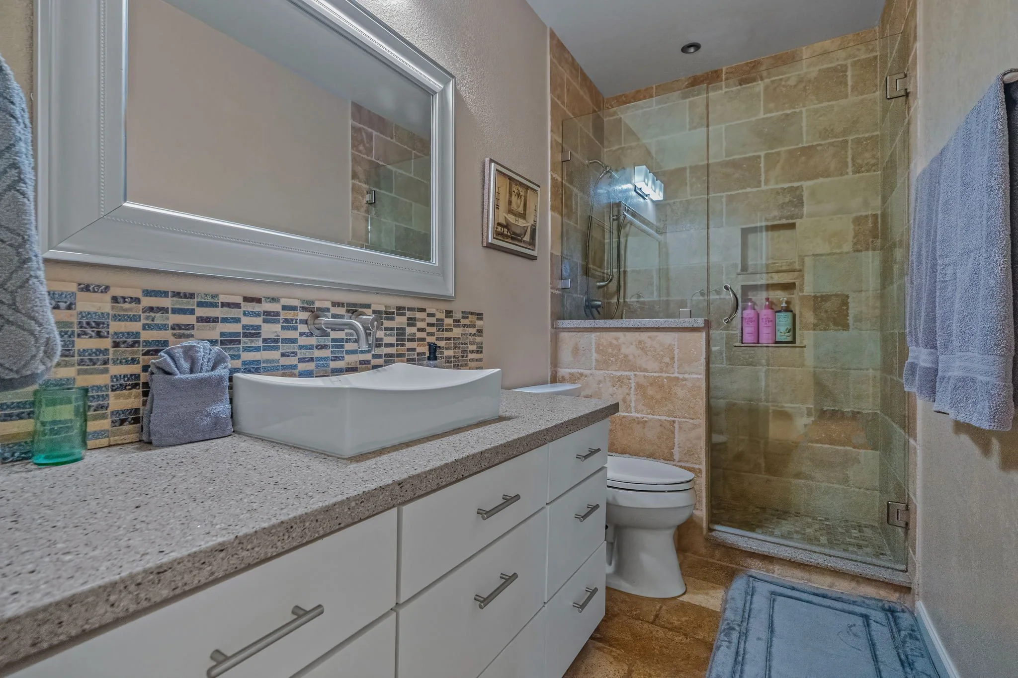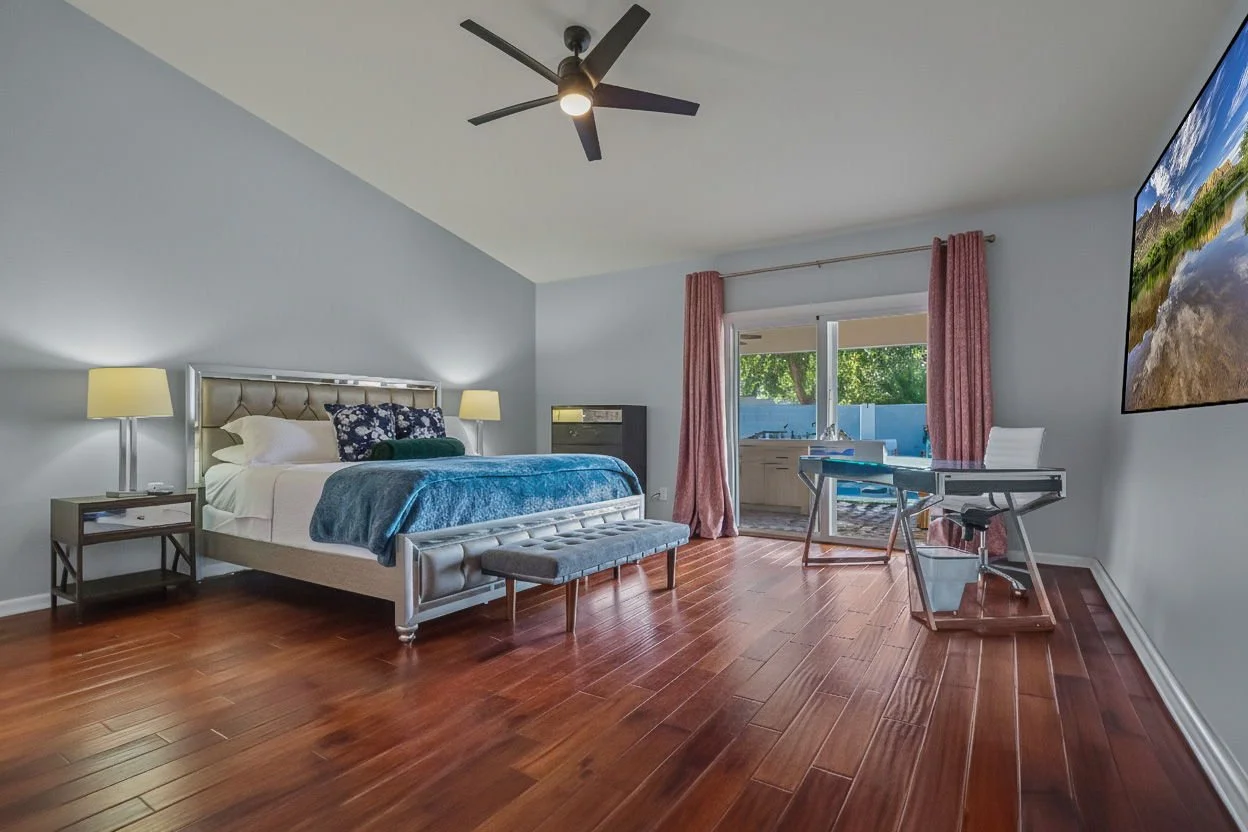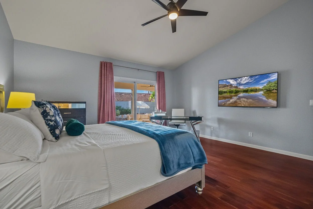 Each bedroom is furnished with a comfortable king bed, clean linens and a closet and dresser to hang and store your belongings. Our bathrooms come with clean towels and toiletries: shampoo, body wash, and a hair dryer. It has everything you need to refresh from a long day touring Scottsdale.